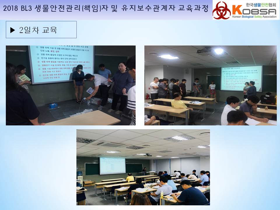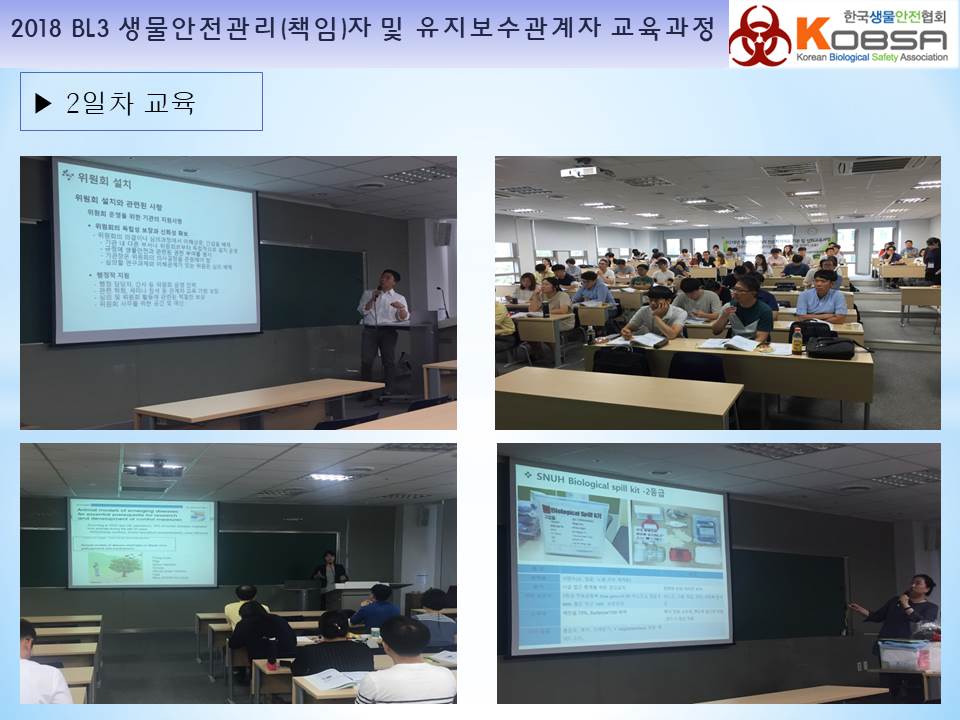 2018년 생물안전3등급 연구시설 생물안전관리(책임)자 및 전문위탁기관 유지보수관계자 교육보고