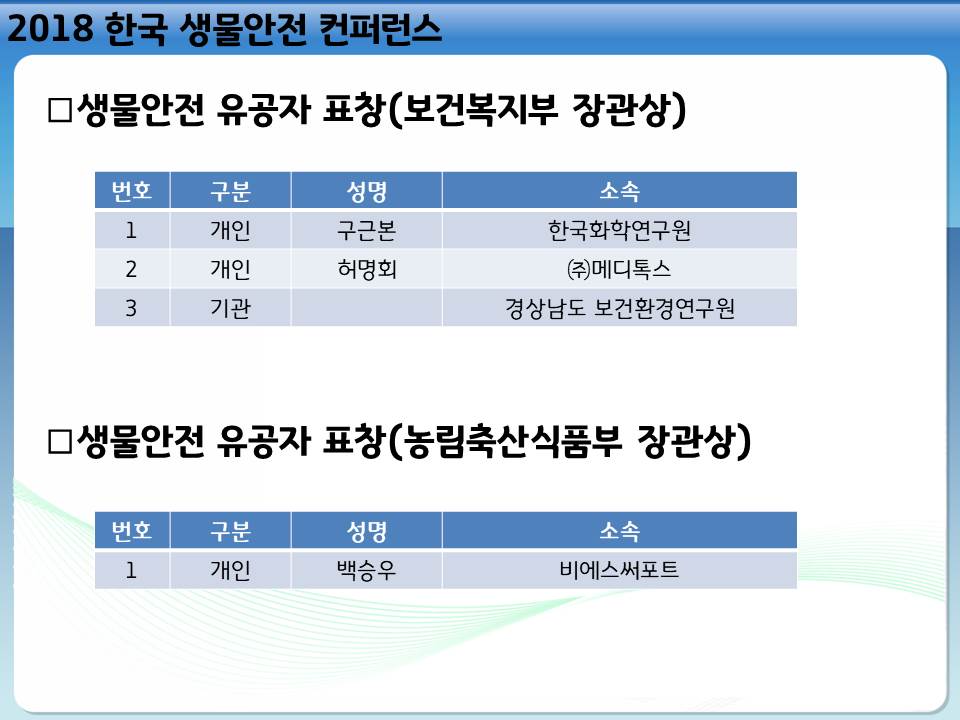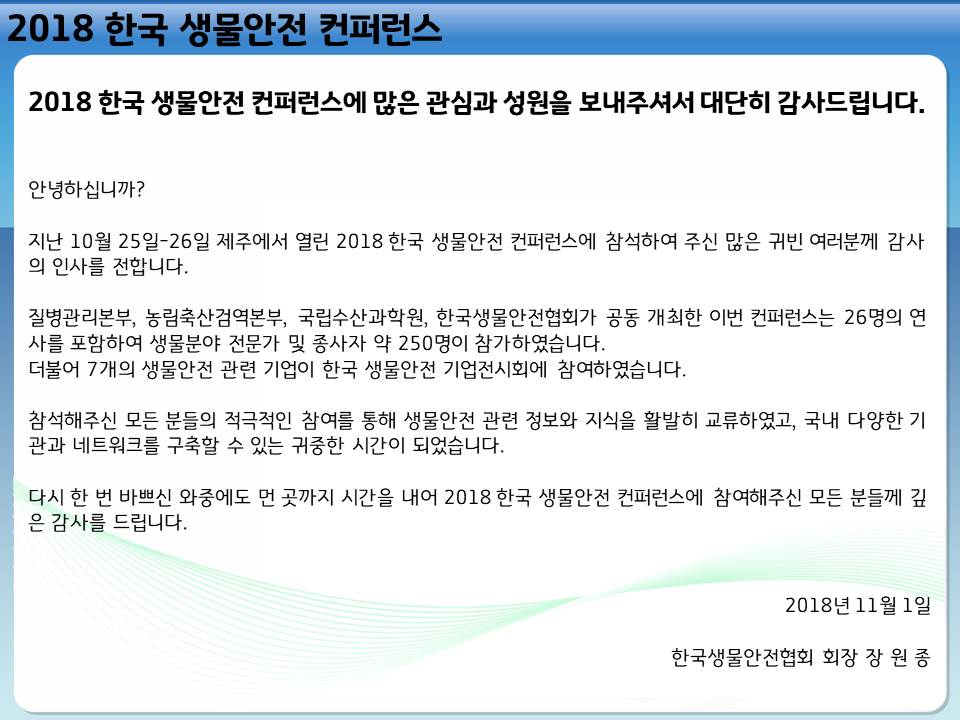 2018 한국 생물안전 컨퍼런스 참가자 여러분께 감사의 말씀 드립니다.