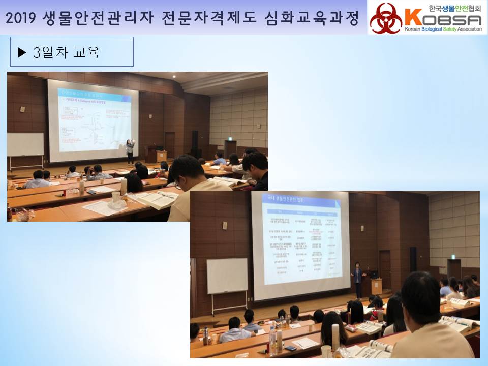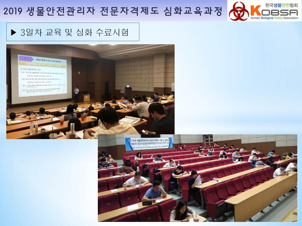 2019년 생물안전관리자 전문자격제도 심화교육과정 교육보고 작성자 최고관리자 조회 2,277 작성일 2019-09-30 안녕하세요 한국생물안전협회입니다. 2019년 생물안전관리자 전문자격제도 심화교육과정을 서울 고려대학교 하나과학관에서 다음과 같이 진행하였습니다. 감사합니다. 이전글 다음글 목록