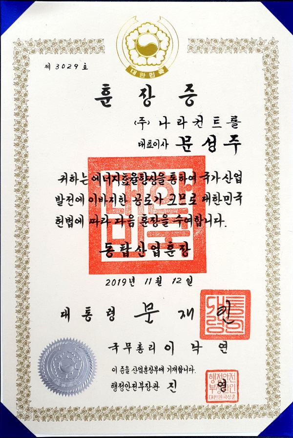 [홍보]2019년 한국에너지대상 동탑 산업훈장 나라컨트롤 문성주 대표 수상