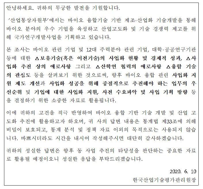 [홍보] 「바이오 융합기술 기반 제조·산업화 기술개발사업(가칭)」 신규사업 기획을 위한 수요조사(~6.19)