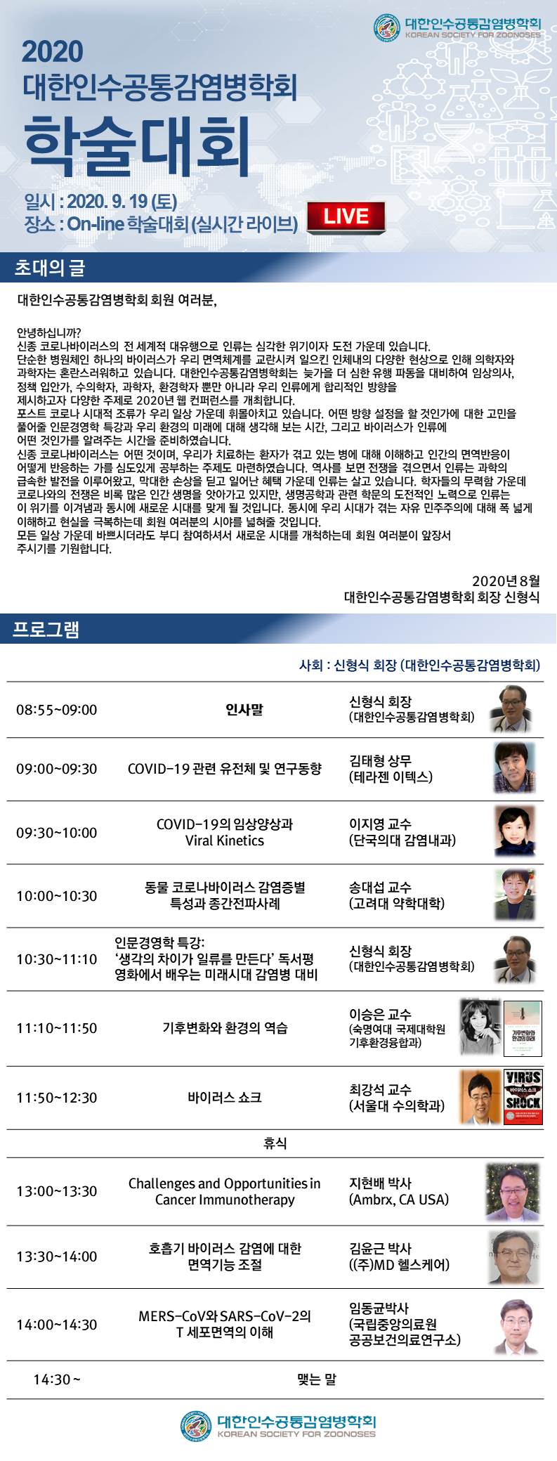 [홍보] 2020 대한인수공통감염병학회 학술대회 (9.19)
