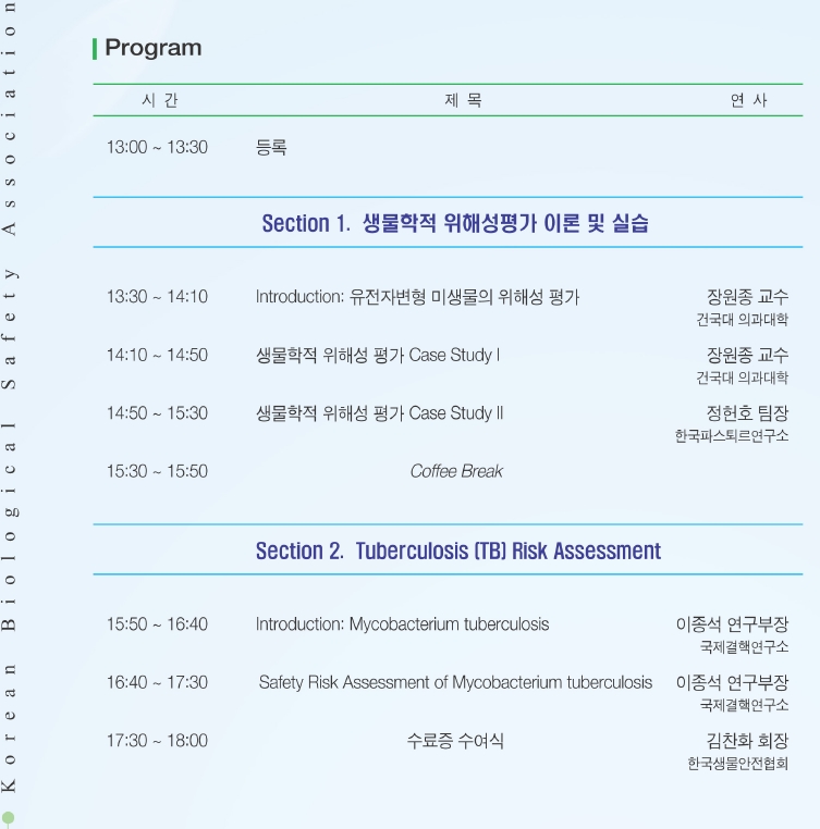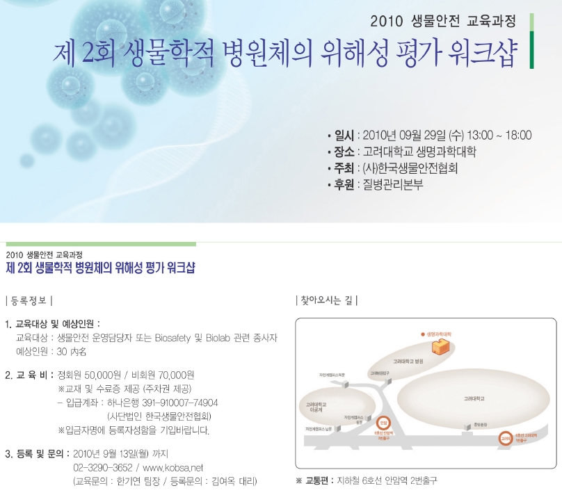 (2010 생물안전 교육과정) 제 2회 생물학적 병원체의 위해성 평가 워크샵. 작성자 KOBSA 조회 3,474 작성일 2010-08-17 * 참가 신청서는 좌측상단에 있습니다. 첨부파일 위해성평가 참가신청서.hwp 이전글 다음글 목록