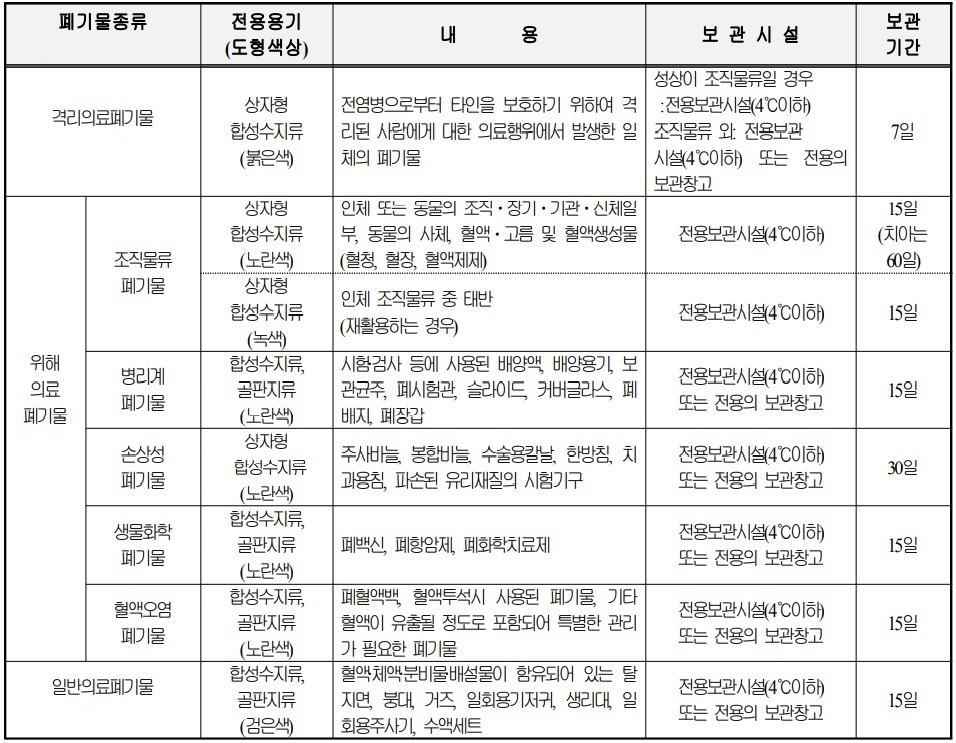 # 의료폐기물 : 폐기물관리법에서 정한 기준 및 방법에 의해 안전히 처리