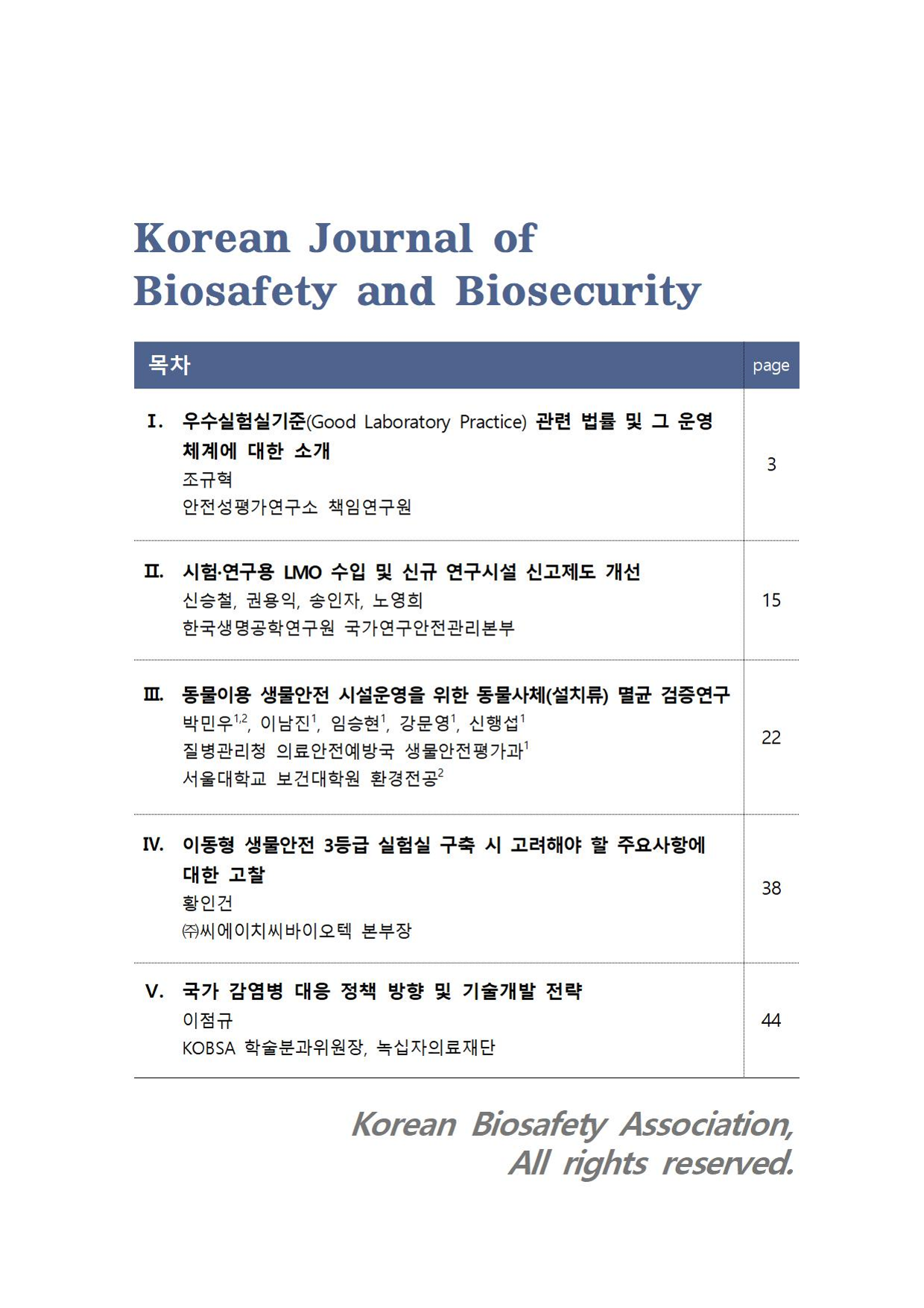 한국생물안전협회 전자저널(Korean Journal of Biosafety and Biosecurity) 4권 2호를 첨부와 같이 배포합니다.