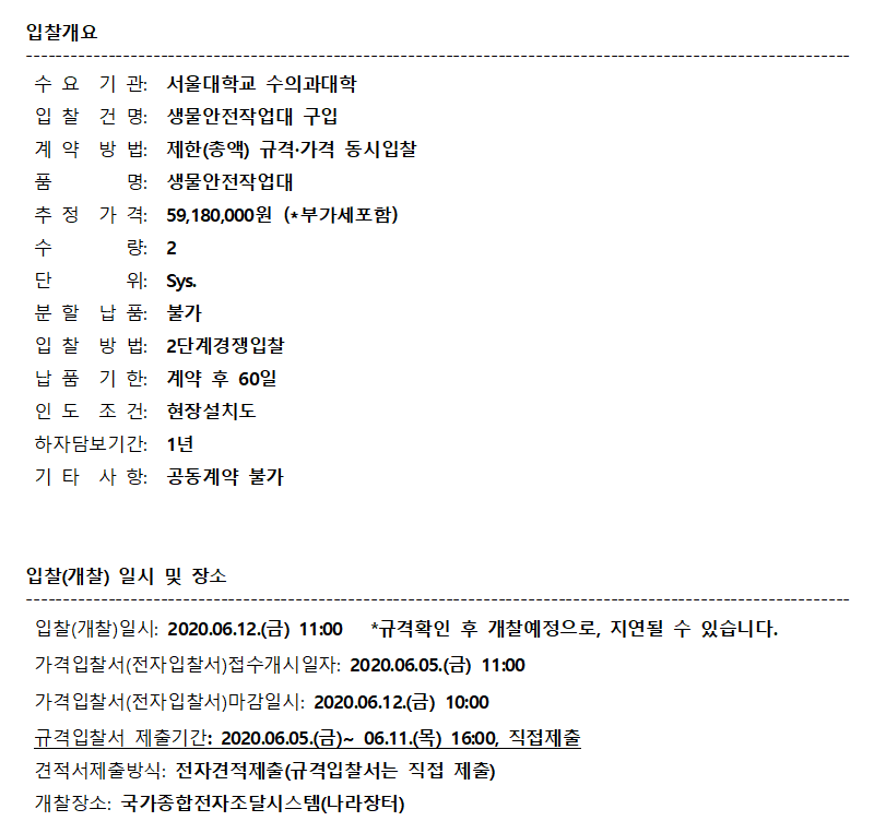 [나라장터] 서울대학교 수의과대학 생물안전작업대 구매 입찰공고(~6.11) 작성자 최고관리자 조회 230 작성일 2020-06-08 안녕하세요. 한국생물안전협회입니다. 서울대학교 수의과대학 생물안전작업대 구매 입찰공고를 안내드립니다. [나라장터 바로가기] 감사합니다. 이전글 다음글 목록