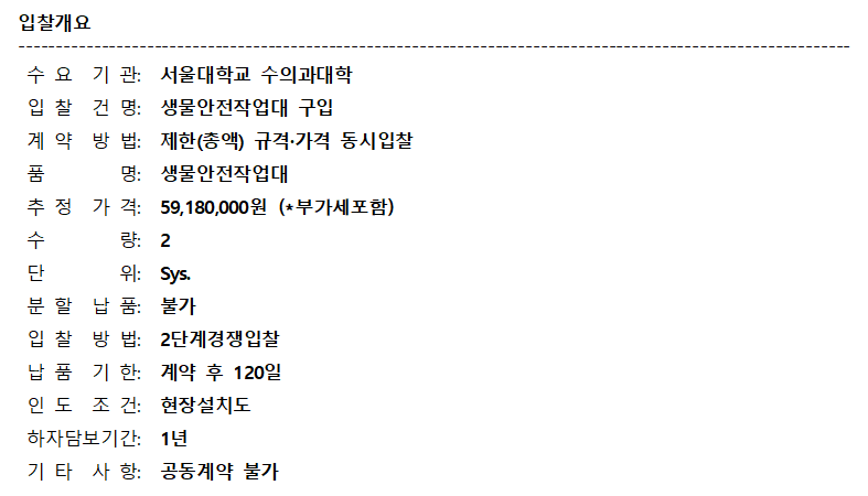 [나라장터] 서울대 수의과대학 생물안전작업대 구입 재공고 (~06.23) 작성자 최고관리자 조회 214 작성일 2020-06-18 안녕하세요. 한국생물안전협회입니다. 서울대 수의과대학 생물안전작업대 구입 재공고를 안내드립니다. [나라장터 바로가기] 감사합니다. 이전글 다음글 목록