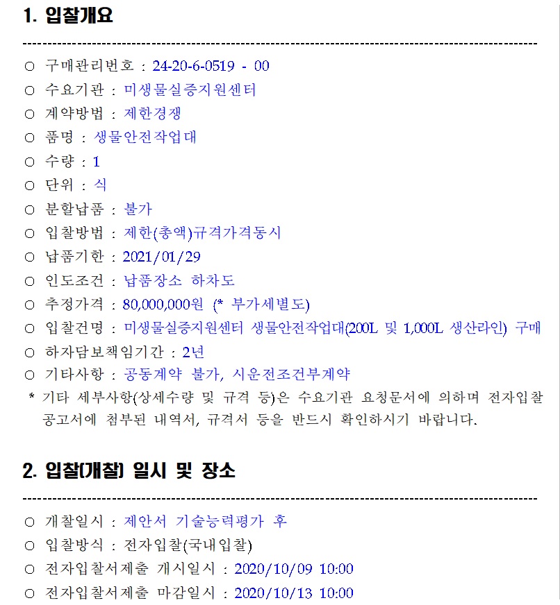 [나라장터] 미생물실증지원센터 생물안전작업대 구매 (~10.13) 작성자 최고관리자 조회 249 작성일 2020-09-22 안녕하세요. 한국생물안전협회입니다. 미생물실증지원센터 생물안전작업대 구매 공고를 안내드립니다. [나라장터 바로가기] 감사합니다. 이전글 다음글 목록