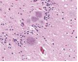 typical amyloid plaques found in a case of variant Creutzfeldt-Jakob disease (vCJD)