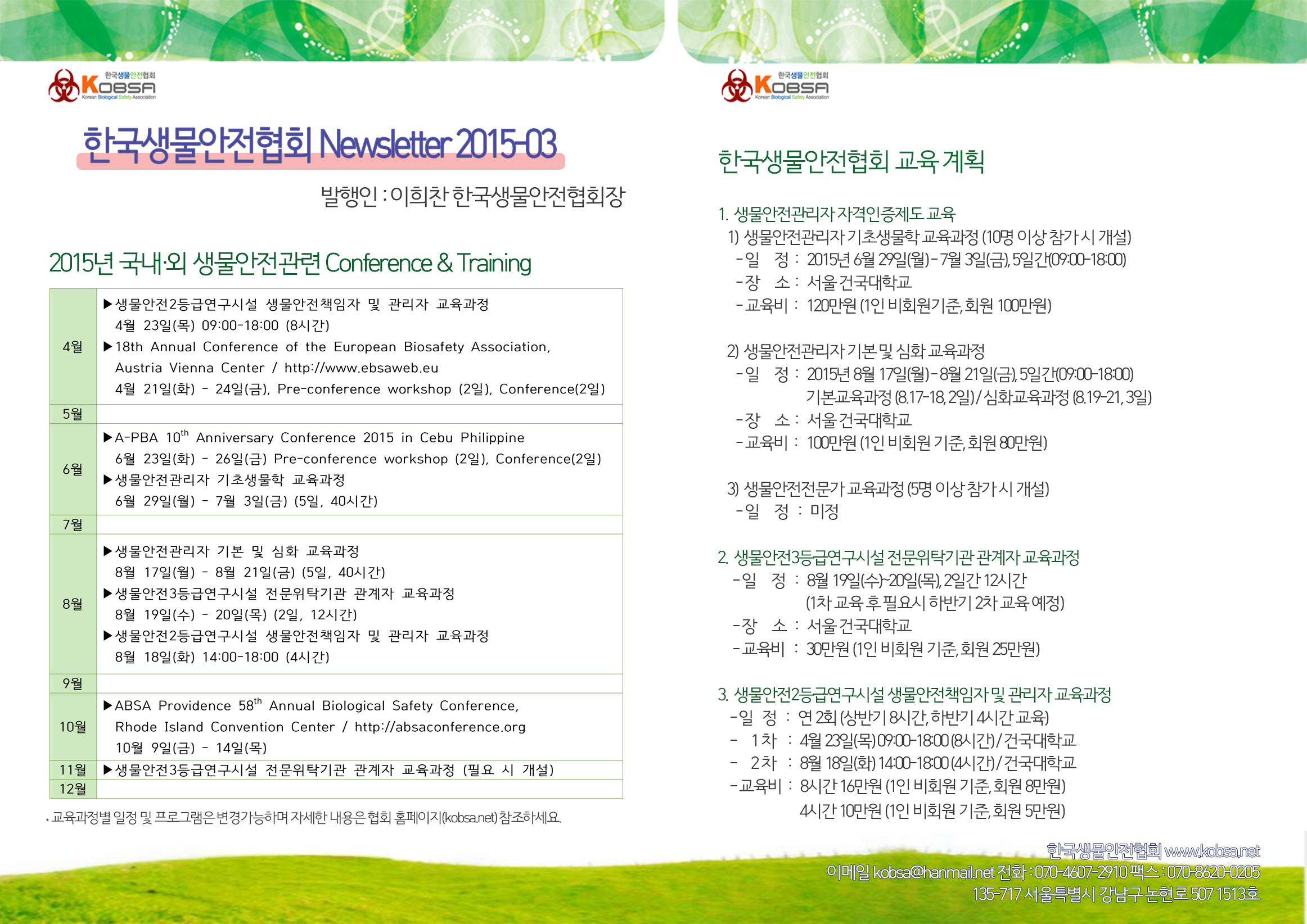 2015년 생물안전 교육과정에 많은 관심과 참여 부탁드립니다.