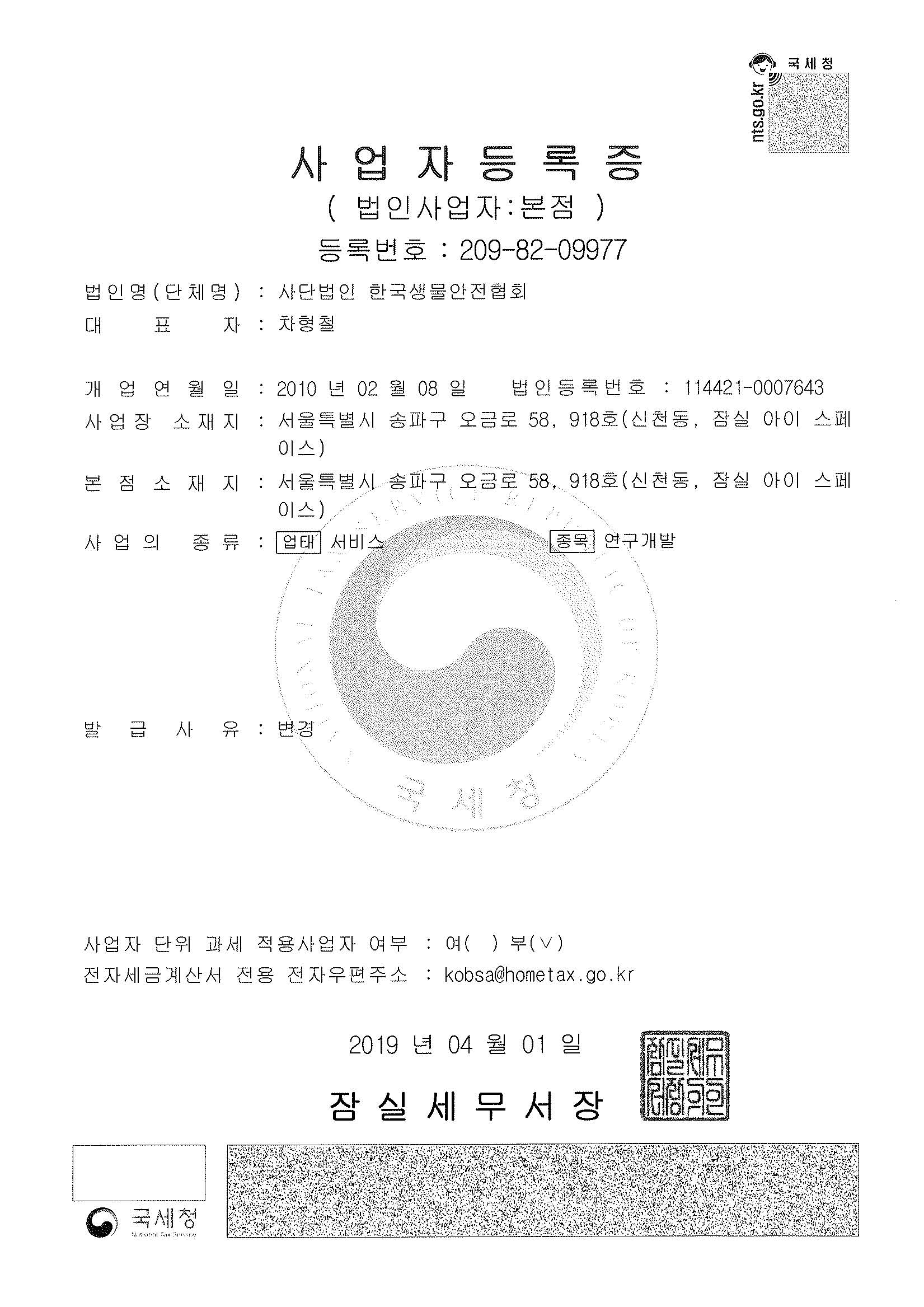 1, 사업자등록증(2019년)