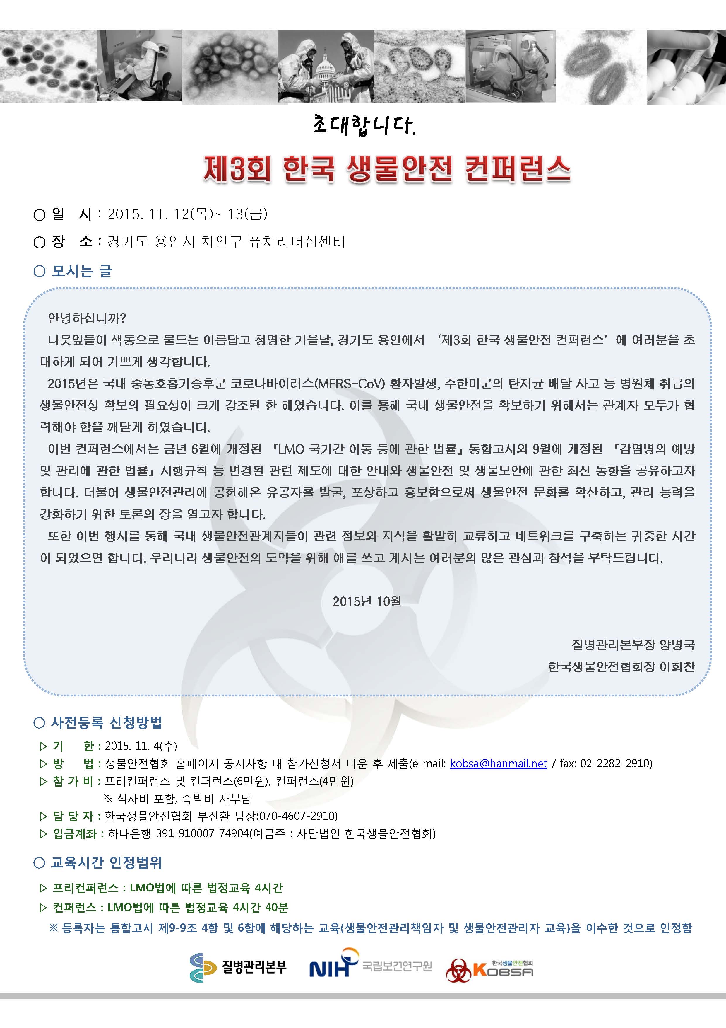 제 3회 한국 생물안전 컨퍼런스 접수중(11.9까지)