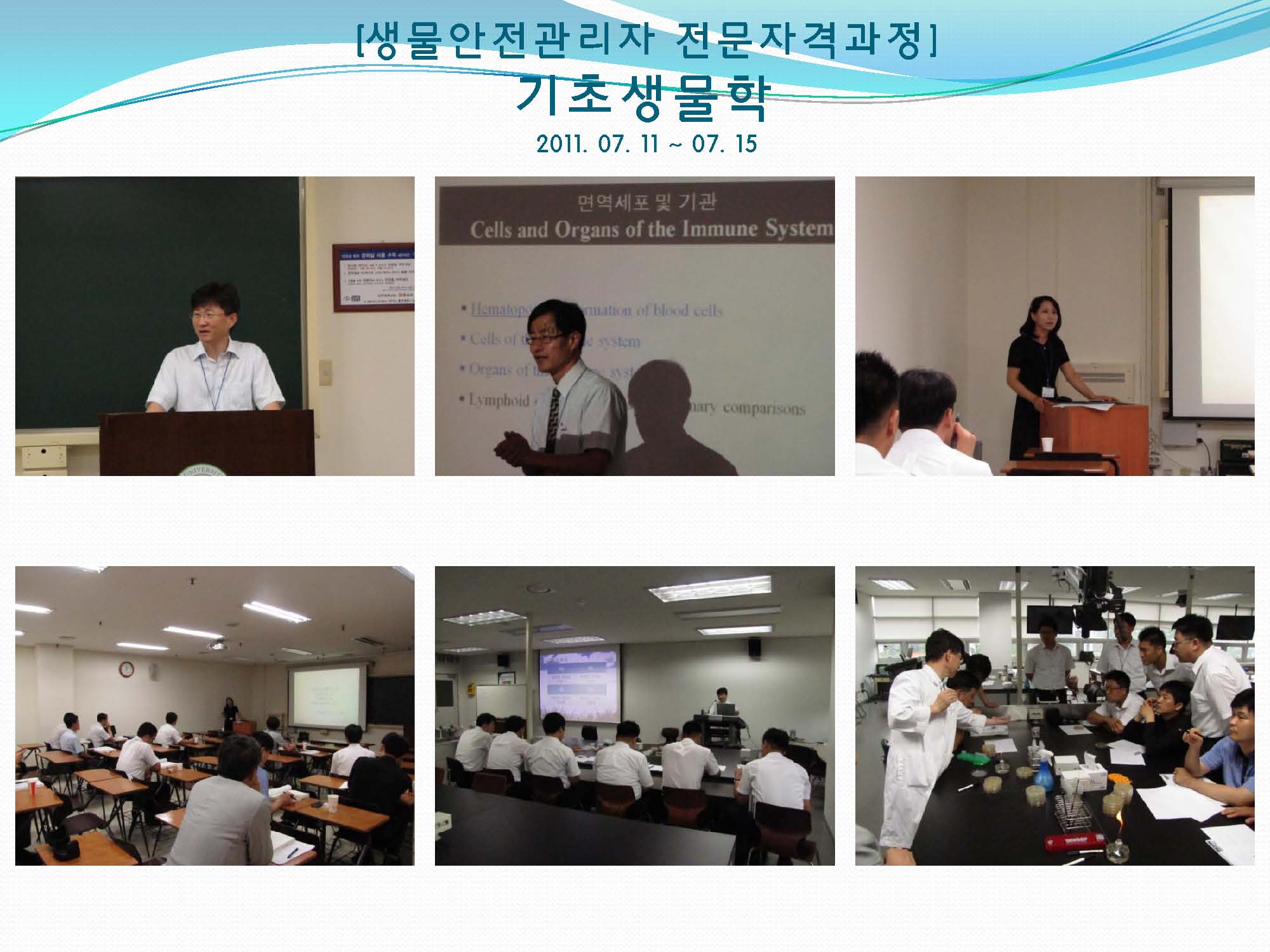 [생물안전관리자 전문자격 : 기초생물학] 사진 :: 작성자 KOBSA 조회 4,768 작성일 2011-08-17 지난 2011년 7월 11일부터 15일까지 건국대학교에서 개최되었던 기초생물학 교육 사진입니다. 이전글 다음글 목록
