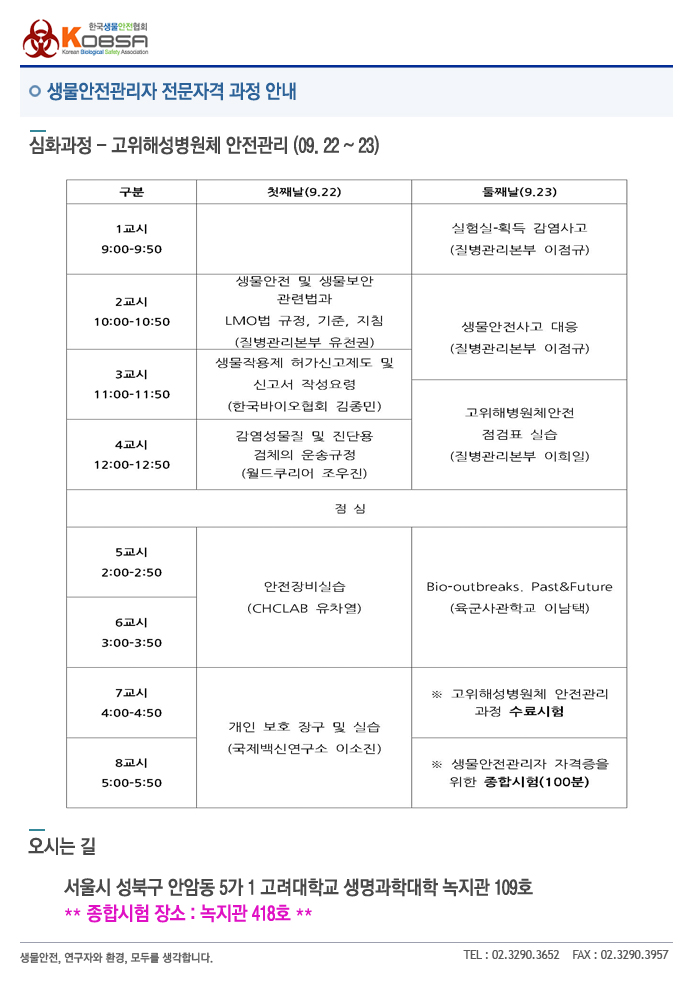 안녕하세요! 한국생물안전협회입니다.