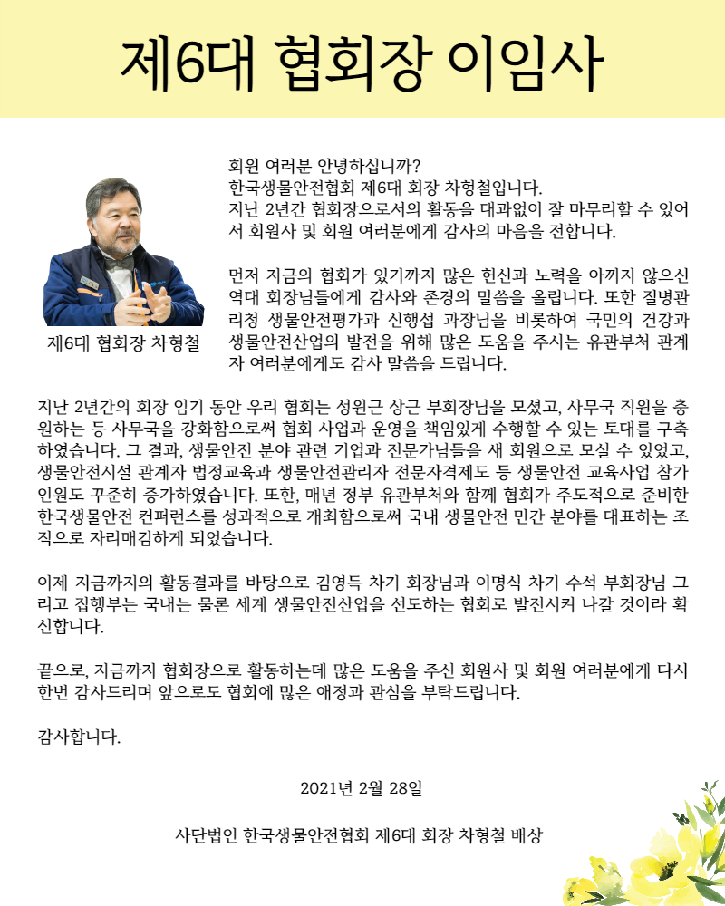 제6대 협회장 차형철 이임사