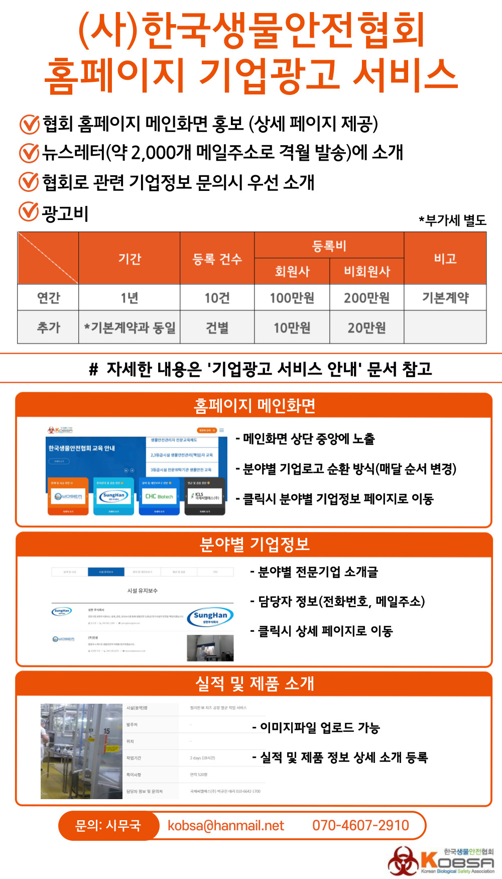 (사)한국생물안전협회 홈페이지 기업광고 서비스 안내 (상시 접수)