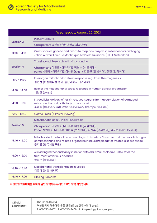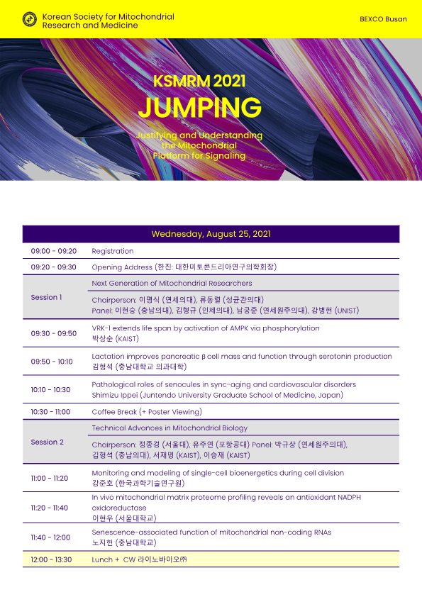 제15회 대한미토콘드리아연구의학회 정기 학술대회 (KSMRM 2021) (8.25 개최) 작성자 홈페이지 관리자 조회 1,349 작성일 2021-07-28 첨부파일 KSMRM2021 Circular.pdf 이전글 다음글 목록