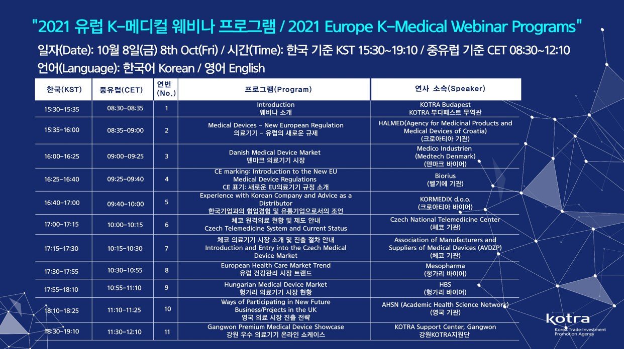 [한국보건산업진흥원] 2021 유럽 K-메디컬 웨비나 프로그램 안내(10.8)