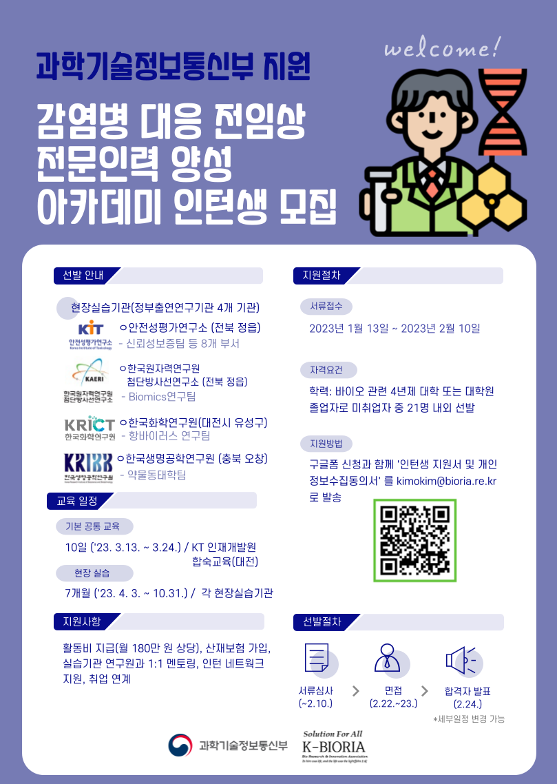 [홍보]감염병 대응 전임상 전문인력 양성 아카데미 인턴생 모집(~2.10)