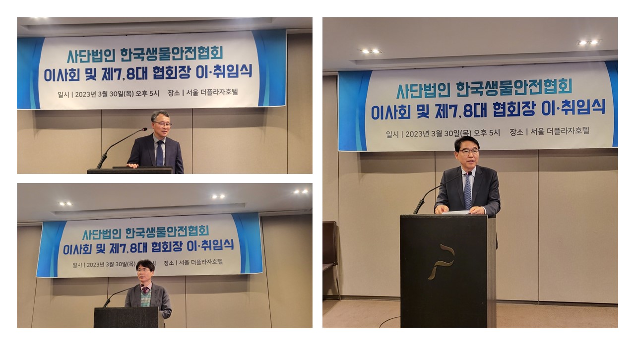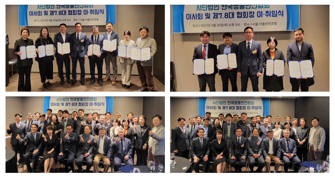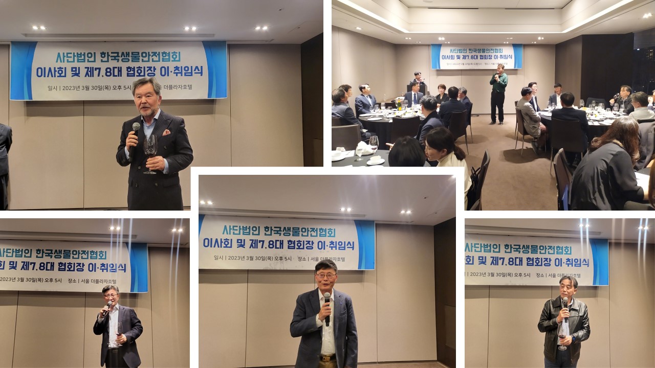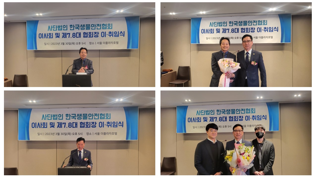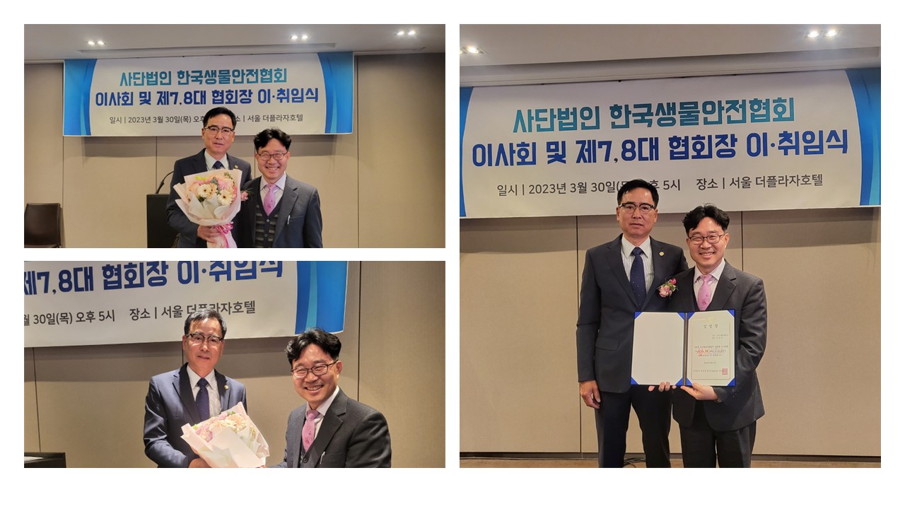 아래와 같이 2023년 사단법인 한국생물안전협회 제7, 8대 협회장 이·취임식을 진행하였습니다.