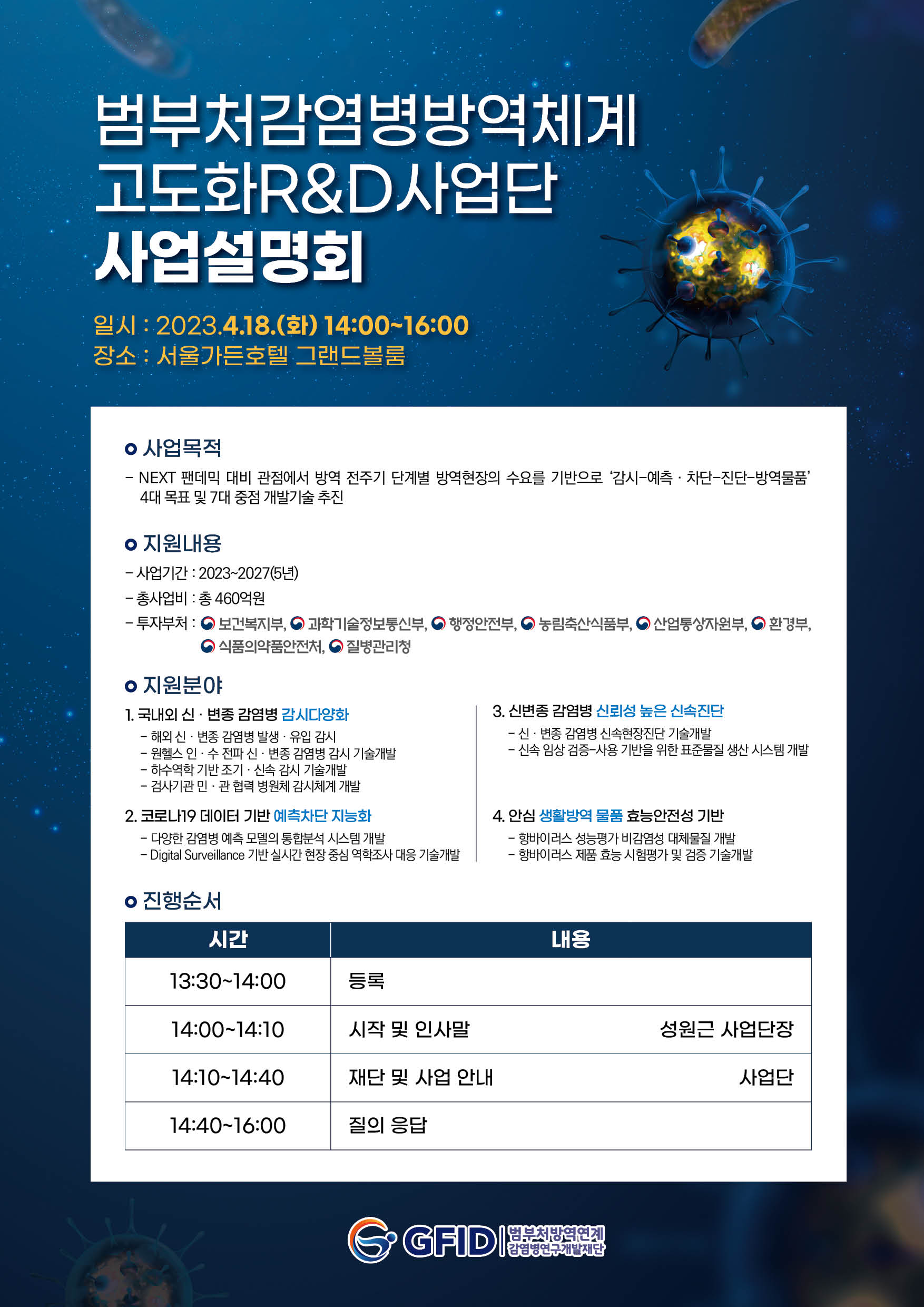 범부처감염병방역체계고도화R&D사업설명회 4.18 개최