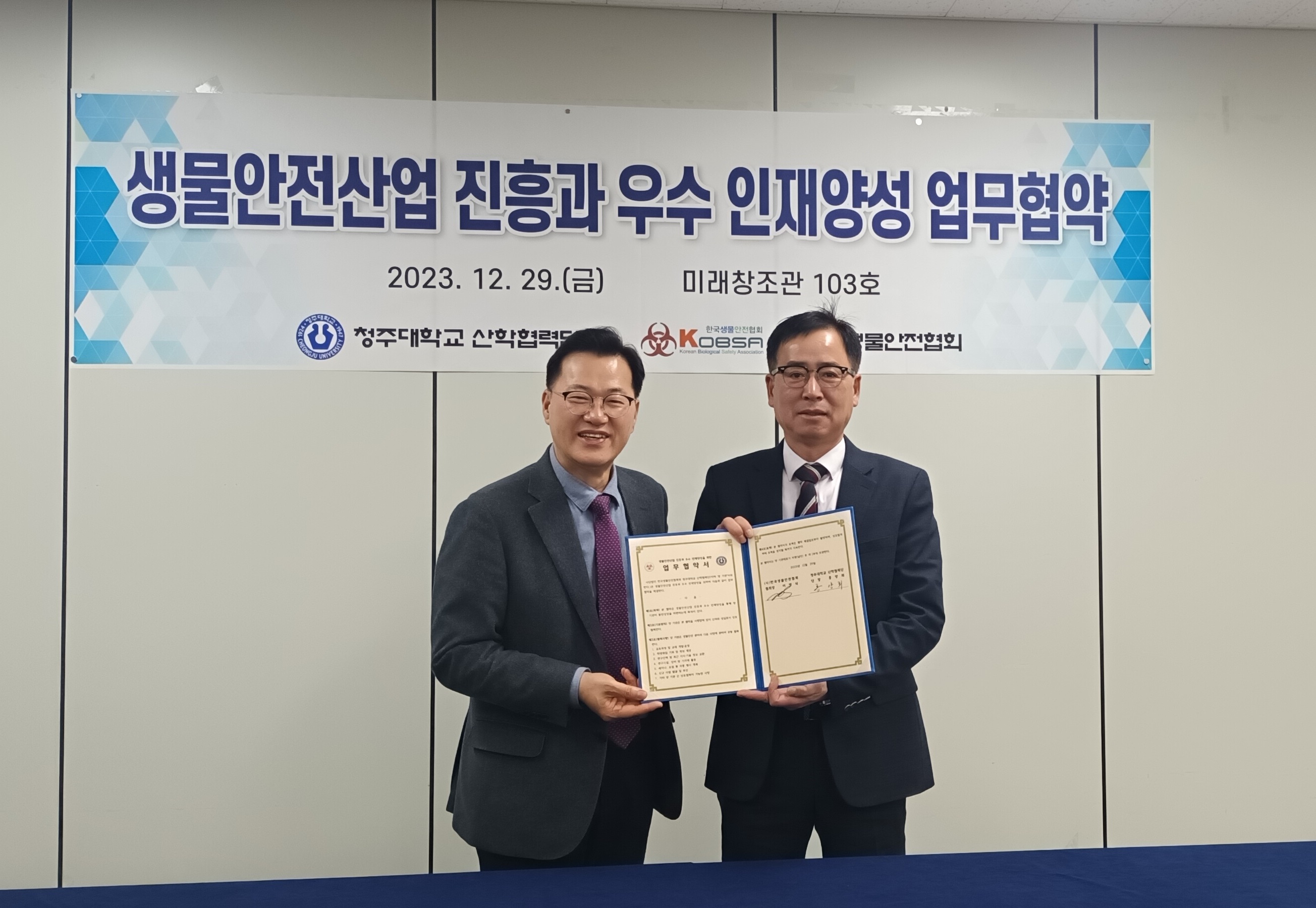 [보도자료](사)한국생물안전협회-청주대학교 업무협약(MOU) 체결(12.29)