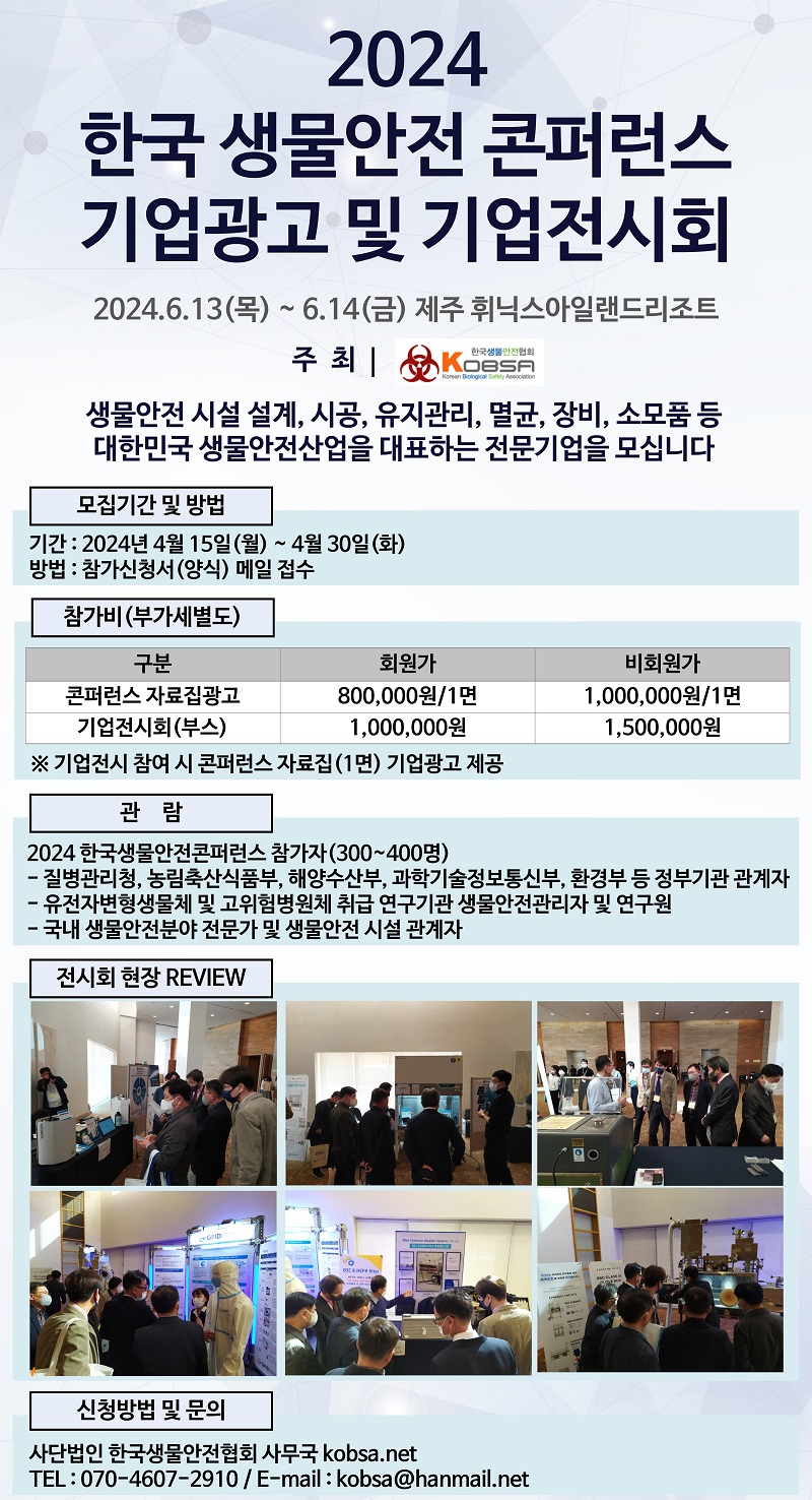 2024 한국생물안전콘퍼런스 기업광고 및 기업전시회 참가 안내(~5.10까지 추가접수)