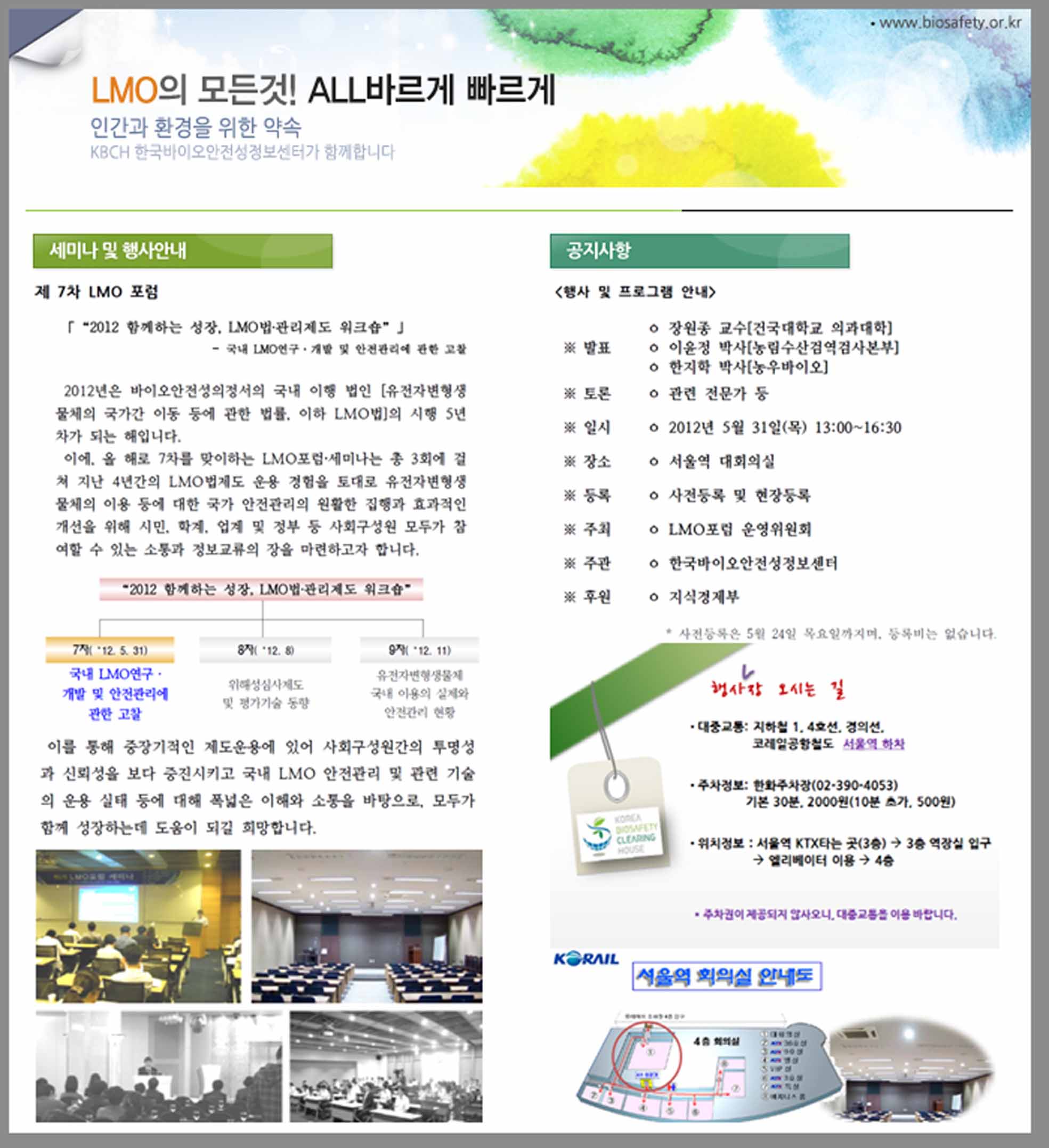 [한국바이오안전성정보센터] 제7차 LMO포럼 세미나 안내 작성자 KOBSA 조회 3,990 작성일 2012-05-11 한국바이오안전성정보센터에서 제 7차 LMO 포럼 세미나가 개최됩니다. 많은 관심과 참석 바랍니다. 첨부파일 제7차_LMO포럼_세미나_개최_안내[1].pdf【붙임_2】사전등록_양식.hwp 이전글 다음글 목록