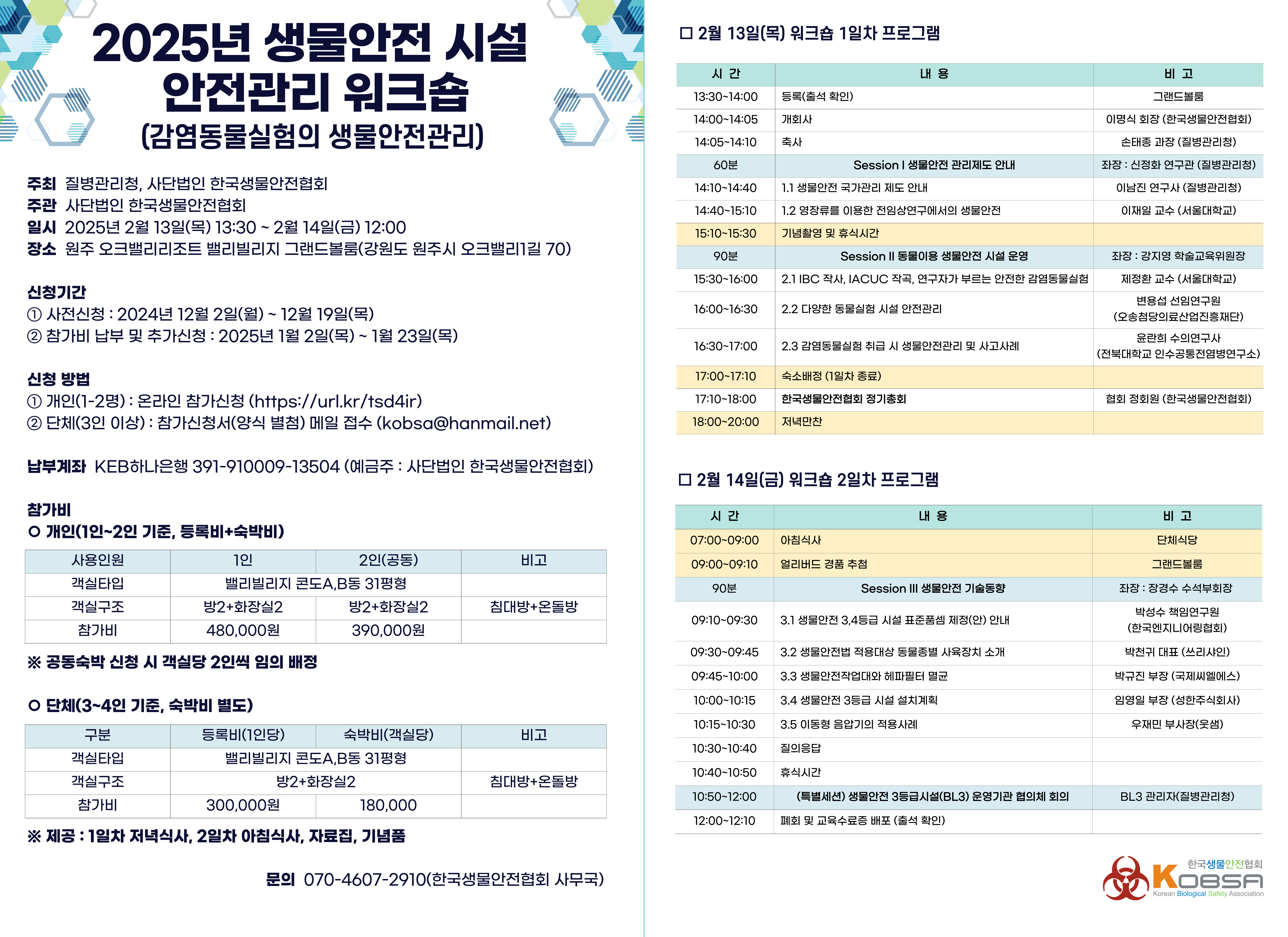 2025년 생물안전 시설 안전관리 워크숍 안내(~1.23 참가접수중)