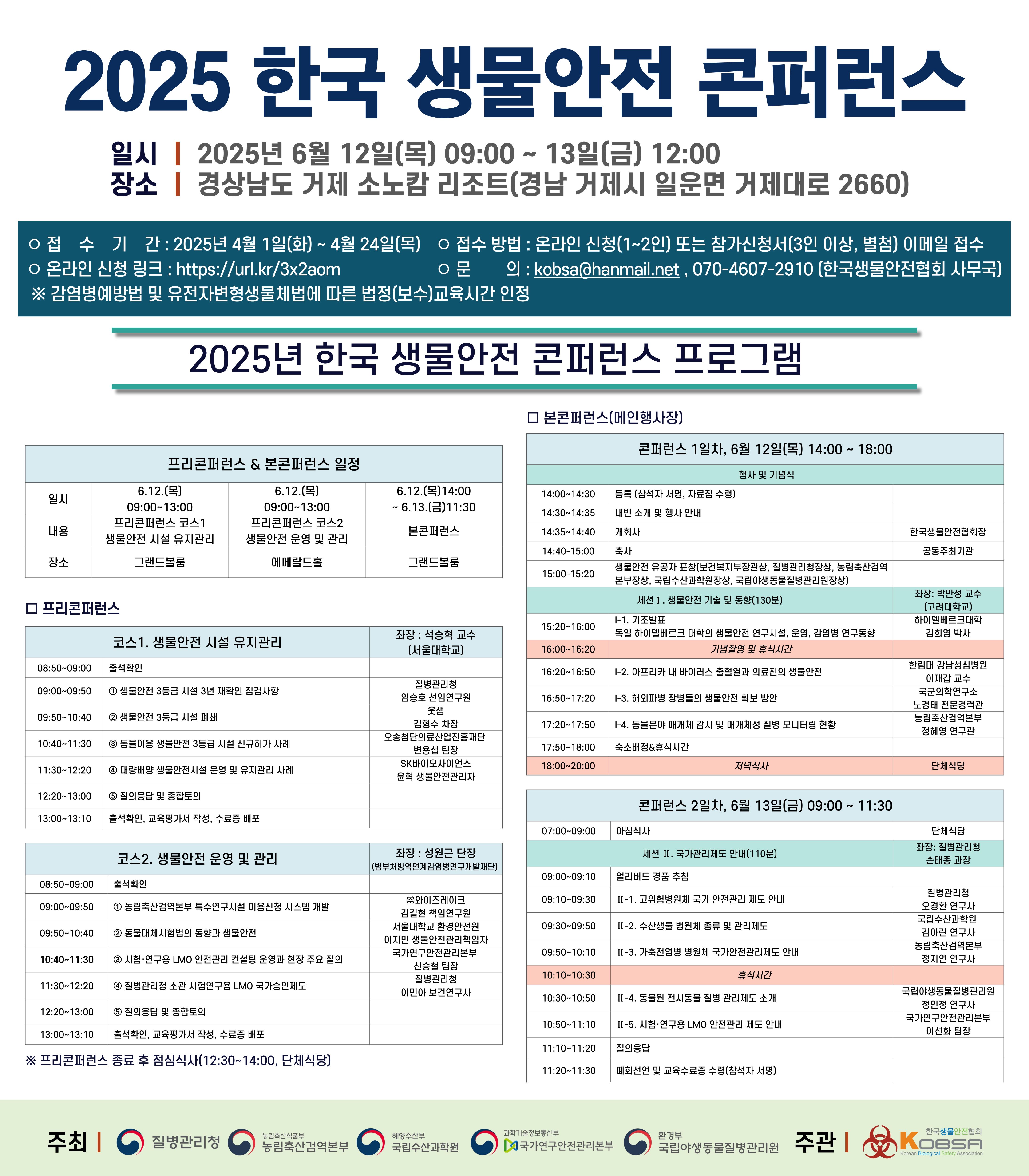 2025 한국 생물안전 콘퍼런스(6.12-13) 개최 안내