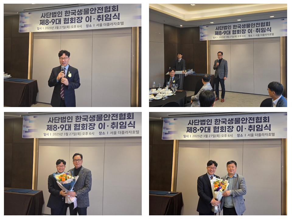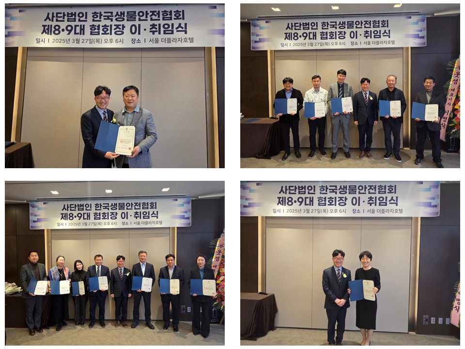 아래와 같이 2025년 사단법인 한국생물안전협회 제8, 9대 협회장 이·취임식을 진행하였습니다.