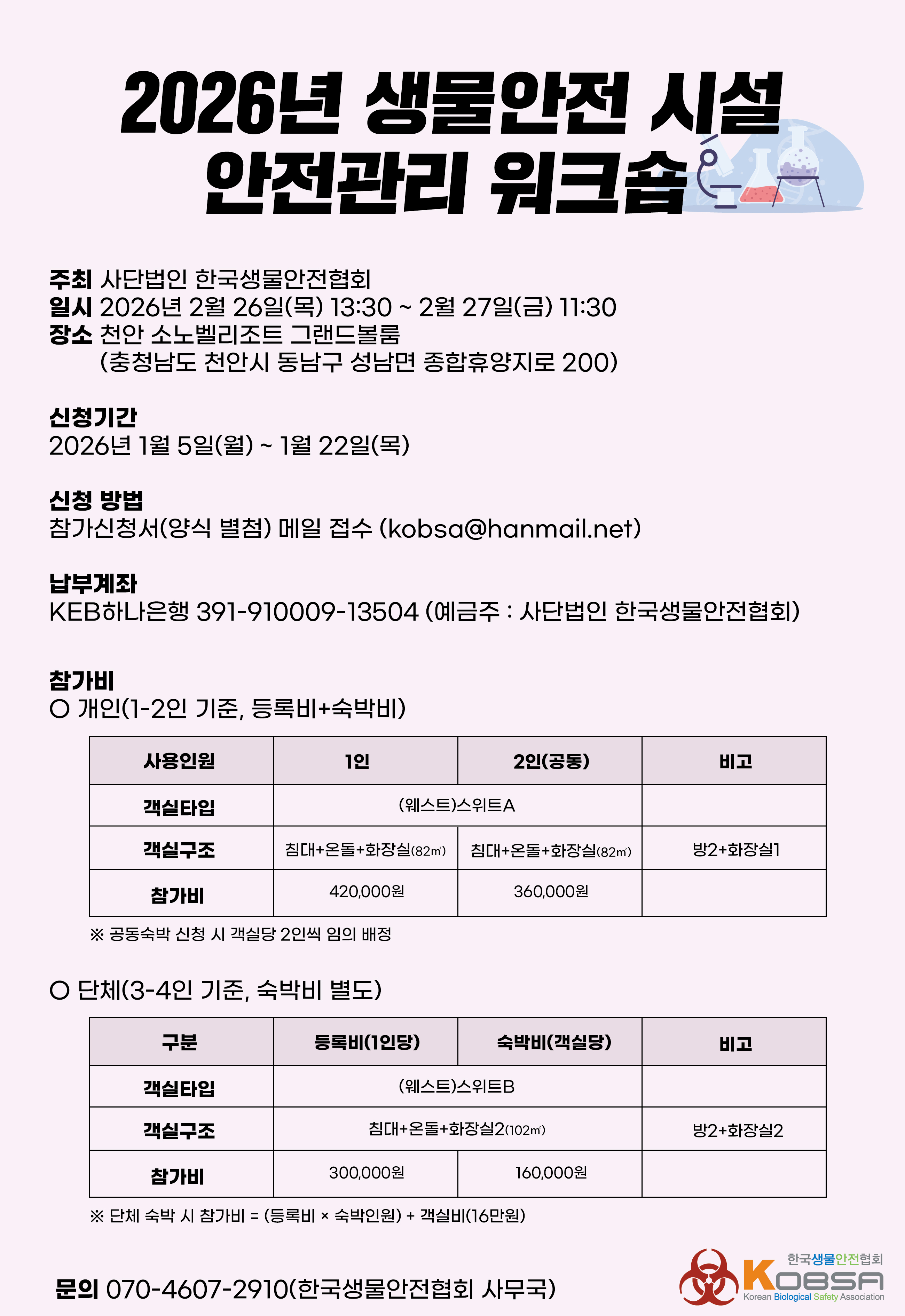 2026년 생물안전 시설 안전관리 워크숍 안내(접수: 1.5~1.22)